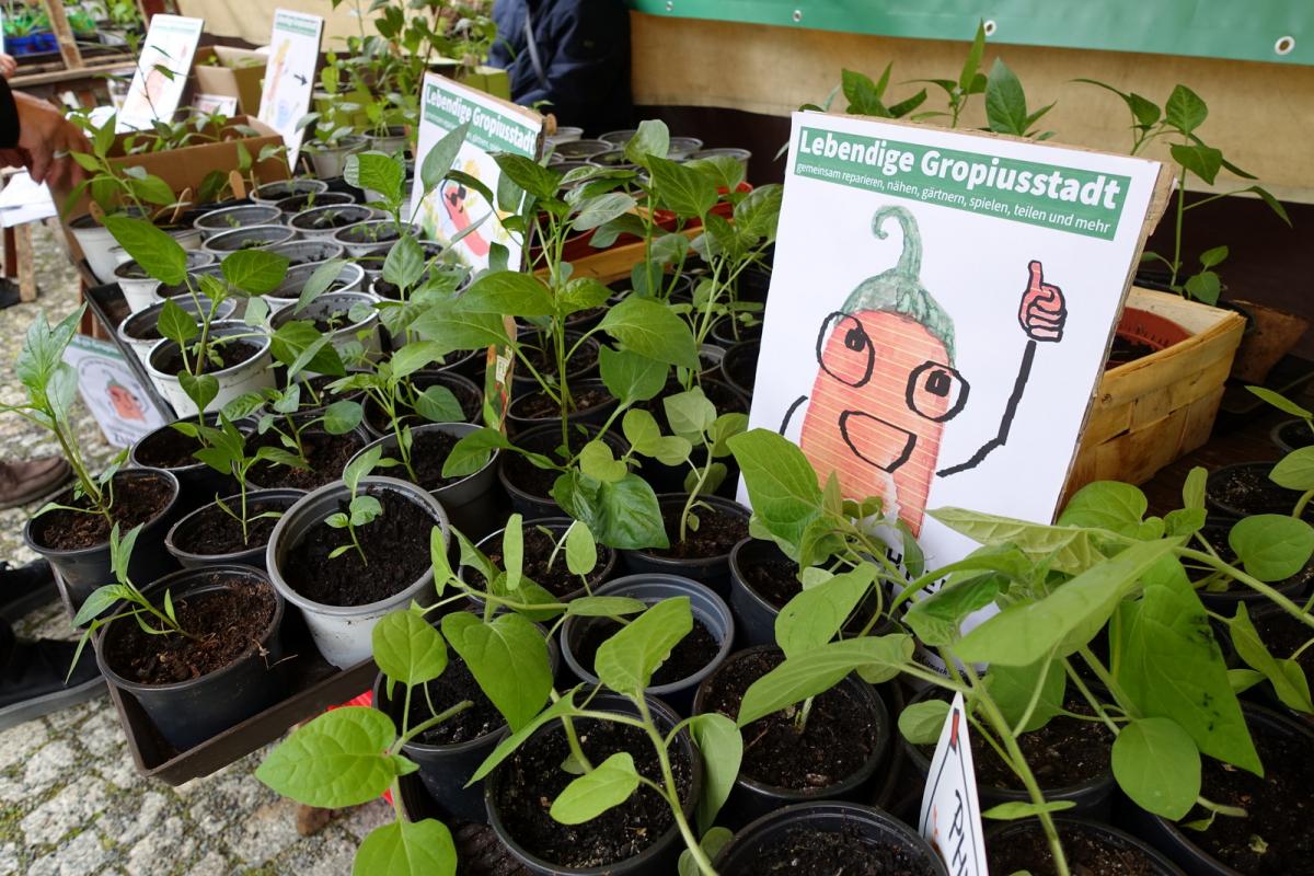 Neben diversen selbstgemachten Leckereien, Kaffee, Kuchen und auch Popcorn konnte man auch diesmal kostenlos Jungpflanzen für den eigenen Balkon oder Garten mitnehmen. Chilis (vom Projekt "Gemüse sucht ein Zuhause") waren neben Tomaten, Paprika und Physalis wieder der Renner. Besonders toll: Auch Besucherinnen und Besucher brachten Pflanzen zum Verschenken mit.
