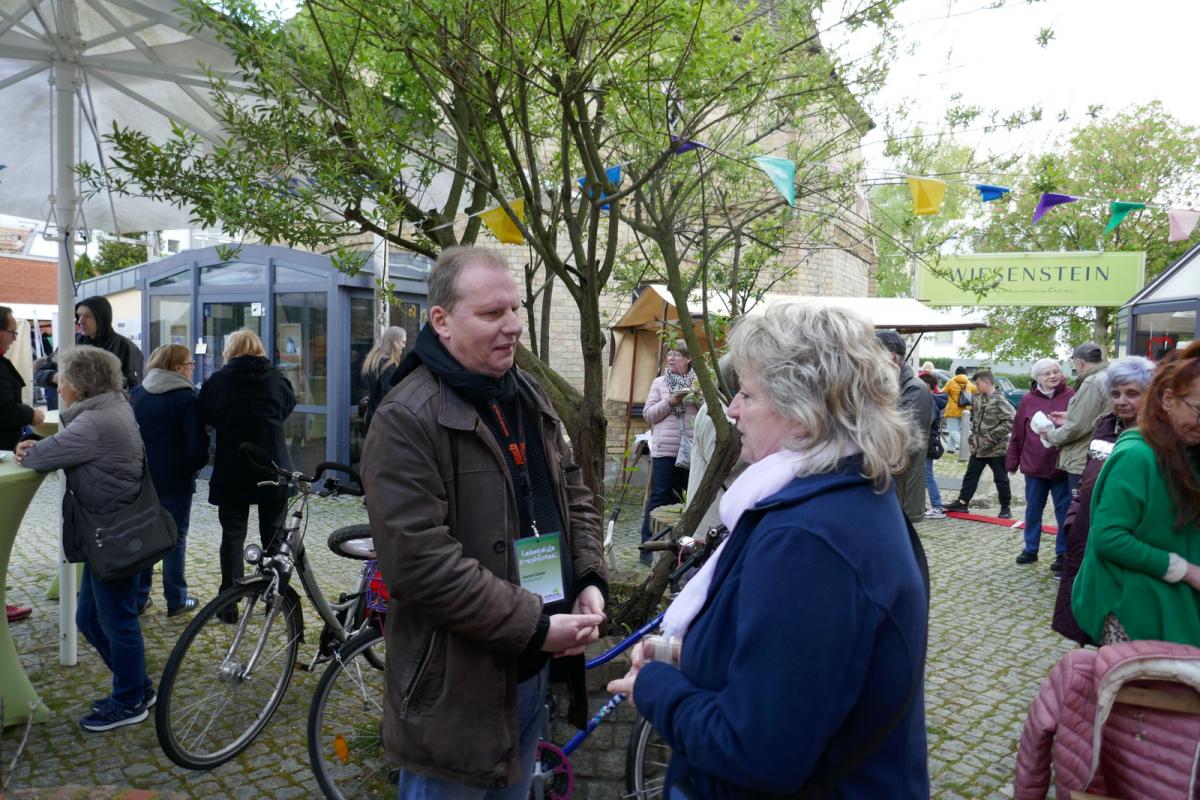 Beim Stand vom Campus Efeuweg konnten Interessierte Saatgut-Bällchen formen und mitnehmen, während gegenüber die AWO über ihre Arbeit am Platz informierte. Bei den Ständen der Kubus gGmbH gab es Selbstgebasteltes aus den hauseigenen Werkstätten sowie einen Stand, der spielerisch und mit tollen Produkten zur Teilnahme an der Europawahl inspirierte.