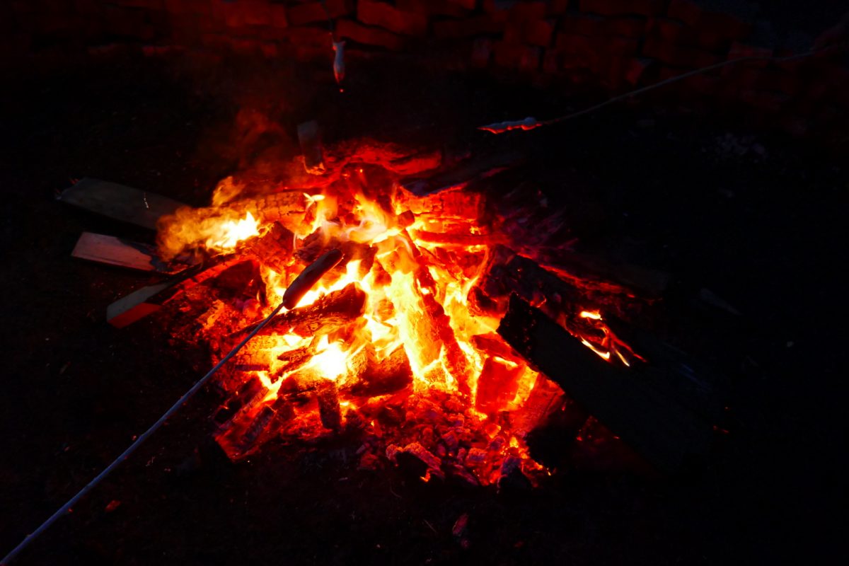 Wie immer gab es selbstgemachtes Stockbrot über den Flammen – doch diesmal kamen auch Würstchenspenden dazu, die gemeinsam aufgespießt geröstet und genossen wurden.