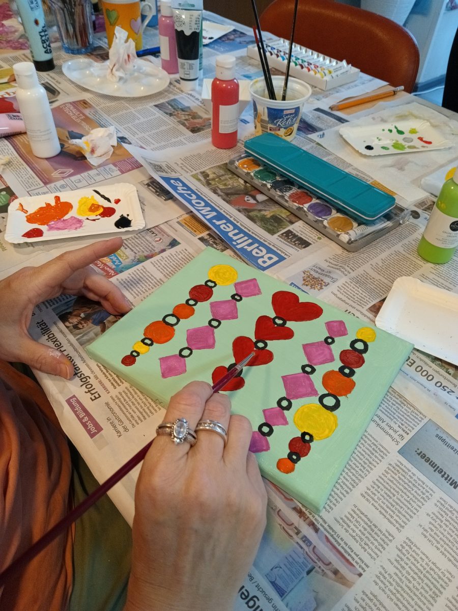 Beim letzten Workshop „Malen kann jeder“ waren alle Plätze ausgebucht – so groß war das Interesse! In der fröhlichen und entspannten Atmosphäre entstanden wieder viele beeindruckende Kunstwerke. Jede Teilnehmerin und jeder Teilnehmer konnte seiner Kreativität freien Lauf lassen und mit Freude die eigenen Ideen auf die Leinwand bringen.