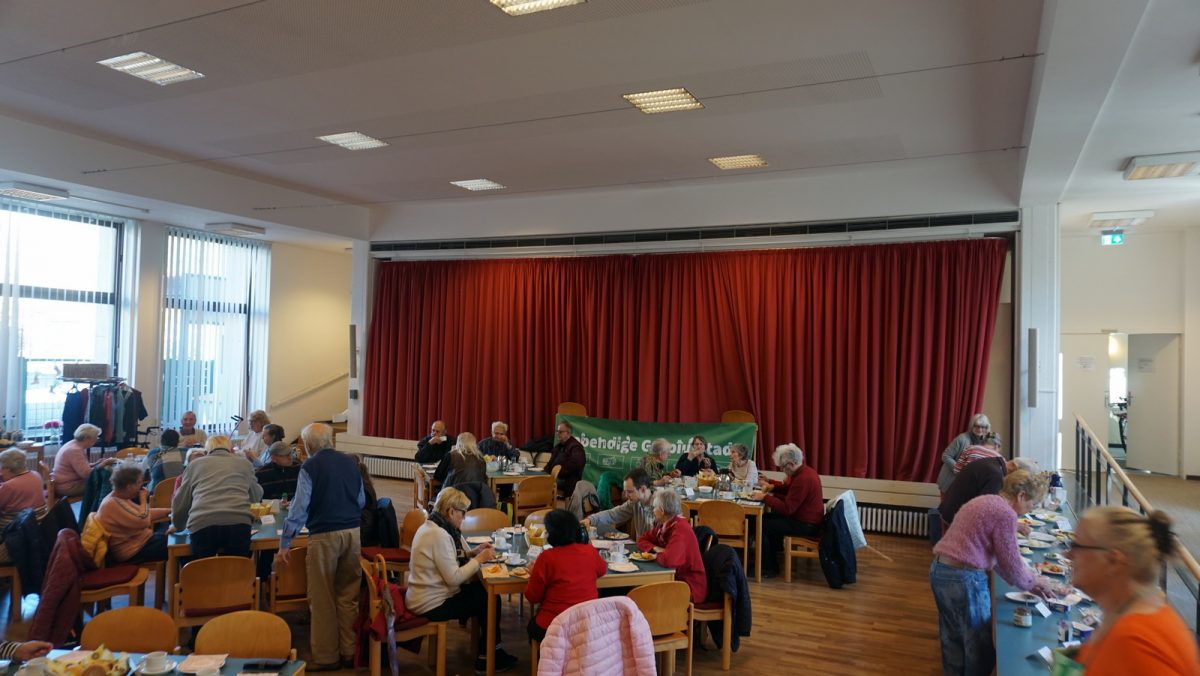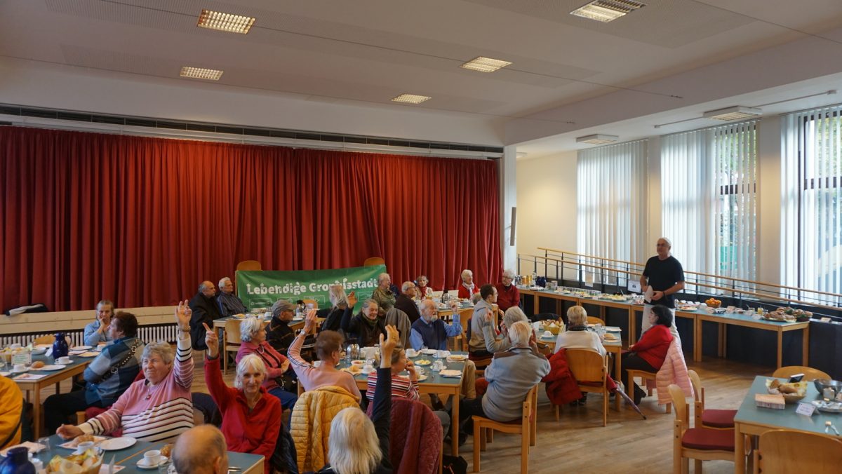 Was für ein schönes Frühstück! Mehr als 40 Nachbarinnen und Nachbarn kamen diesmal in den großen, hellen Saal der Martin-Luther-King-Gemeinde – und die Stimmung war einfach wunderbar. Zwischen dampfendem Kaffee, frischen Brötchen und fröhlichem Stimmengewirr wurde geredet, gelacht und fleißig geteilt: am Buffet genauso wie am Verschenketisch, der sich wieder über viele mitgebrachte Kleinigkeiten freuen konnte.
