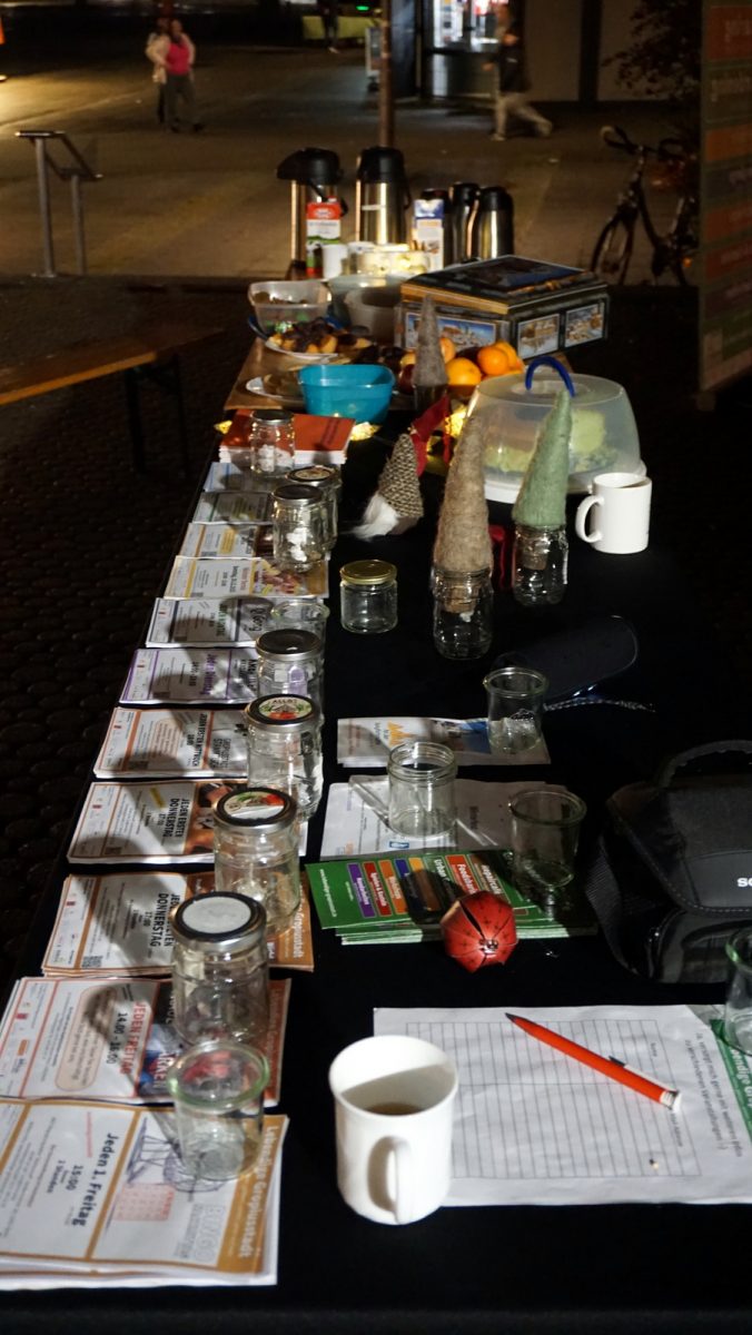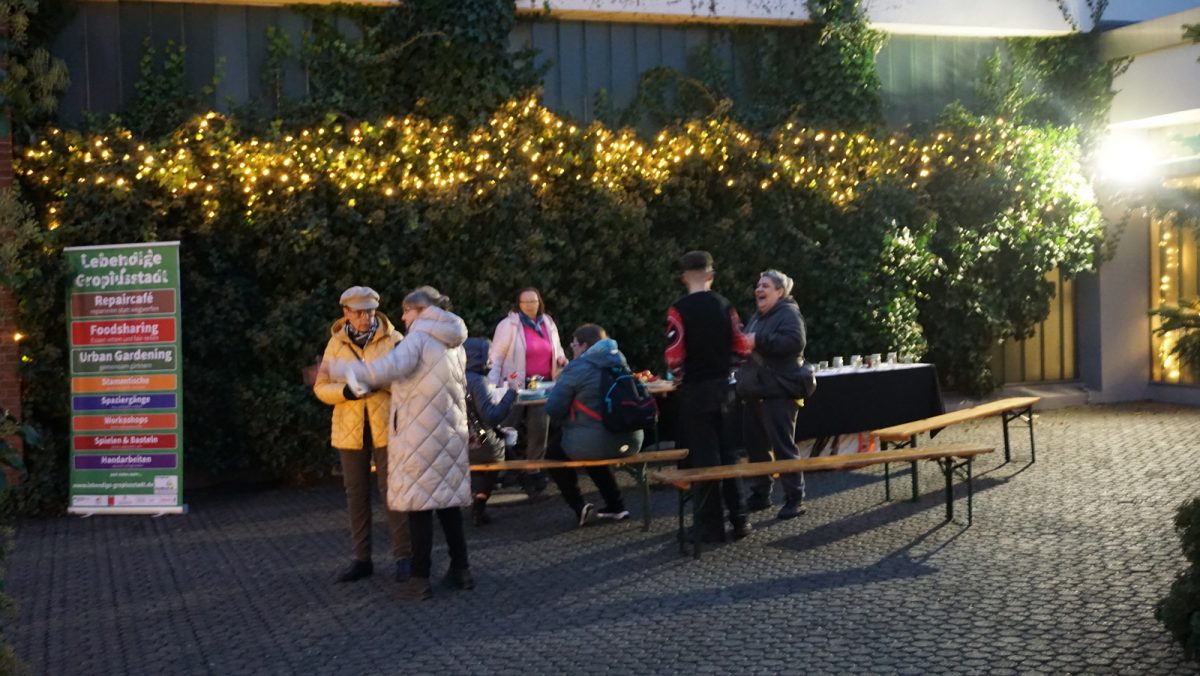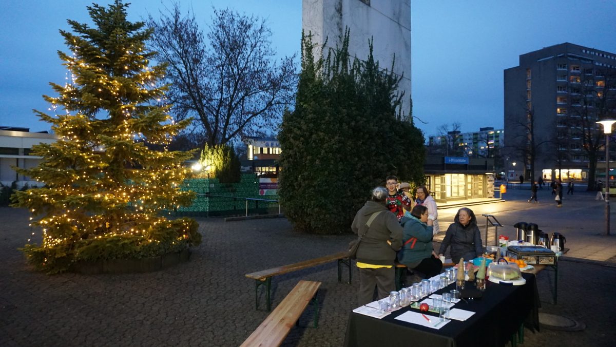 Die helfenden Hände verteilten selbstgebackene Kekse und spendierten Kaffee und Kuchen – für alle, die vorbeischauten. Vor dem U-Bahnhof wurden Passantinnen und Passanten angesprochen und eingeladen, den kleinen Ort zu besuchen. Viele nahmen die Einladung gerne an, bedankten sich herzlich und freuten sich über die besondere Aktion in der Nachbarschaft.