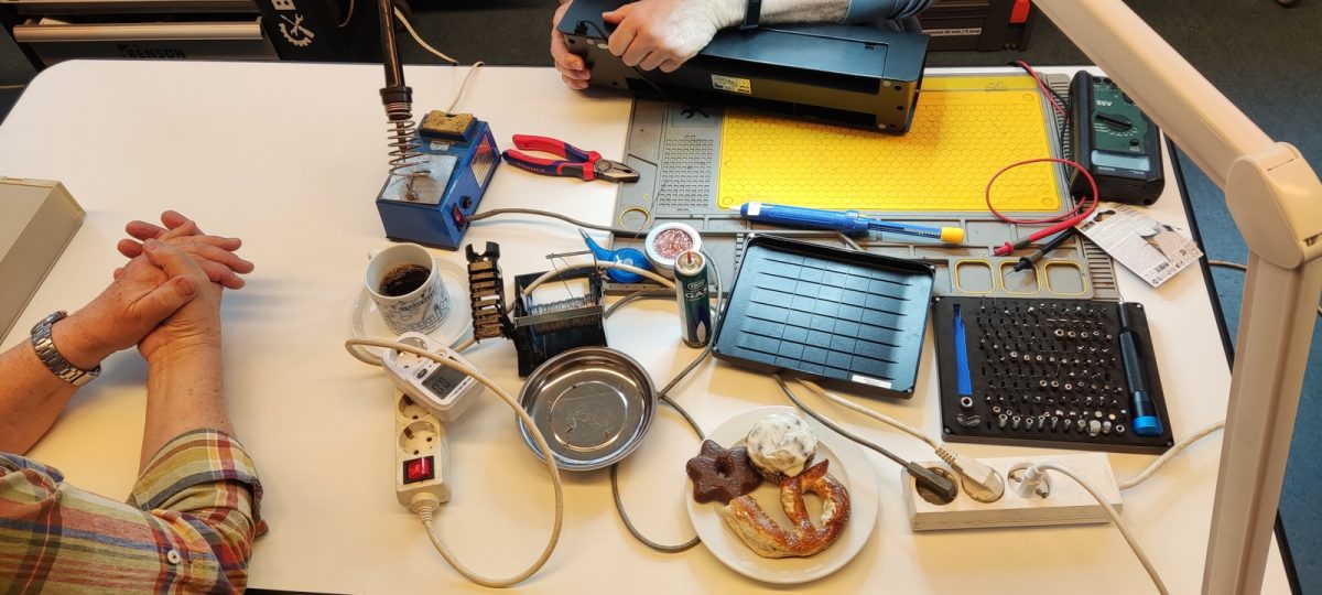 Auch dieses Mal wurde beim Repaircafé wieder geschraubt, geprüft und mit viel Geduld nach Lösungen gesucht. Auf den Tischen landeten unter anderem ein Radio mit CD-Teil, eine Lichterkette, eine elektrische Zahnbürste, ein Laminiergerät, ein Diaprojektor, ein Schredder, ein Rasierer und ein Waffeleisen. Die Bandbreite zeigt: Fast alles darf vorbeigebracht werden.