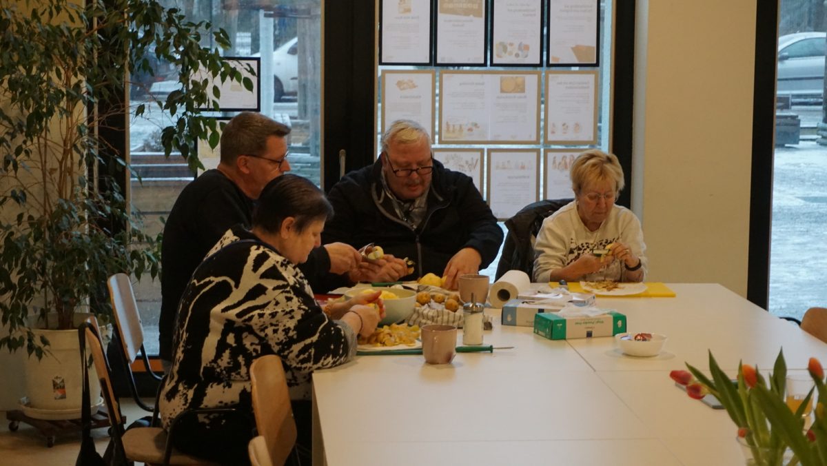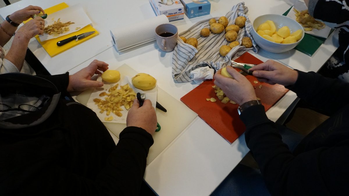 Was für ein rundum gelungener Abend! Insgesamt 20 Menschen kamen zur Küfa zusammen. Fünf starteten direkt an den Schnippelstationen, fünf weitere wirbelten in der schönen, offenen Küche des Fritzitreffs, und zehn Gäste gesellten sich später zum Essen dazu. Alles lief ruhig, freundlich und Hand in Hand – fast so, als würde man schon ewig zusammen kochen.