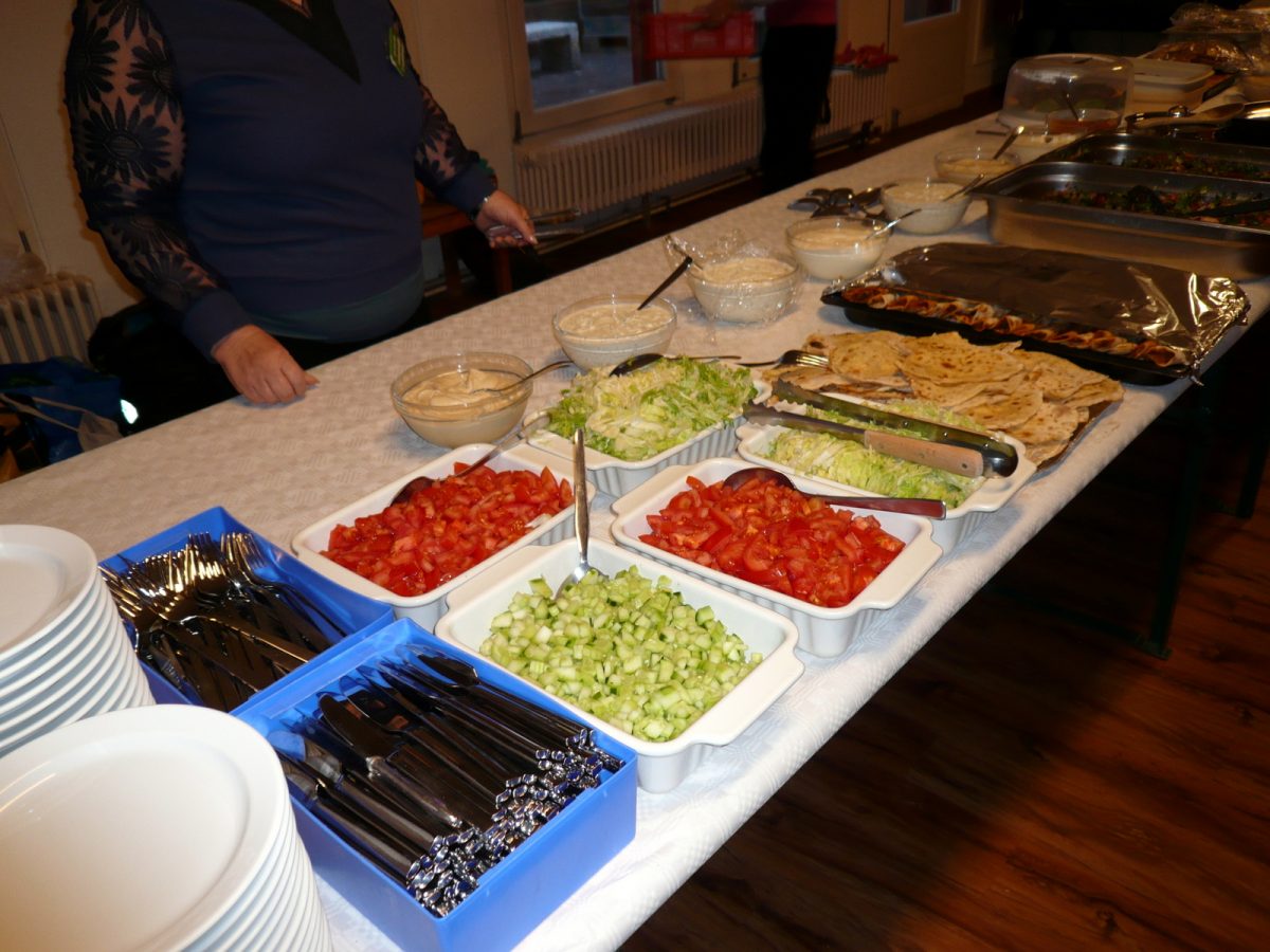 Als die Sonne unterging, wurde das Buffet eröffnet. Viele liebevoll zubereitete Speisen sorgten für große Begeisterung und einen rundum gelungenen Abend.
