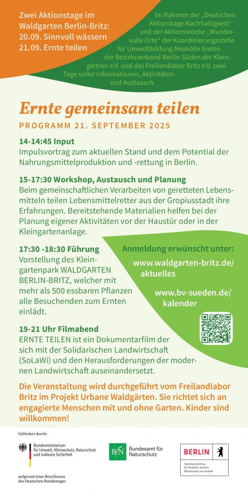 So21Sep15:00So17:3015:00 - 17:30 Ernte gemeinsam TeilenWir sind NICHT Veranstalter!Waldgarten BritzEvent Typ Teilen