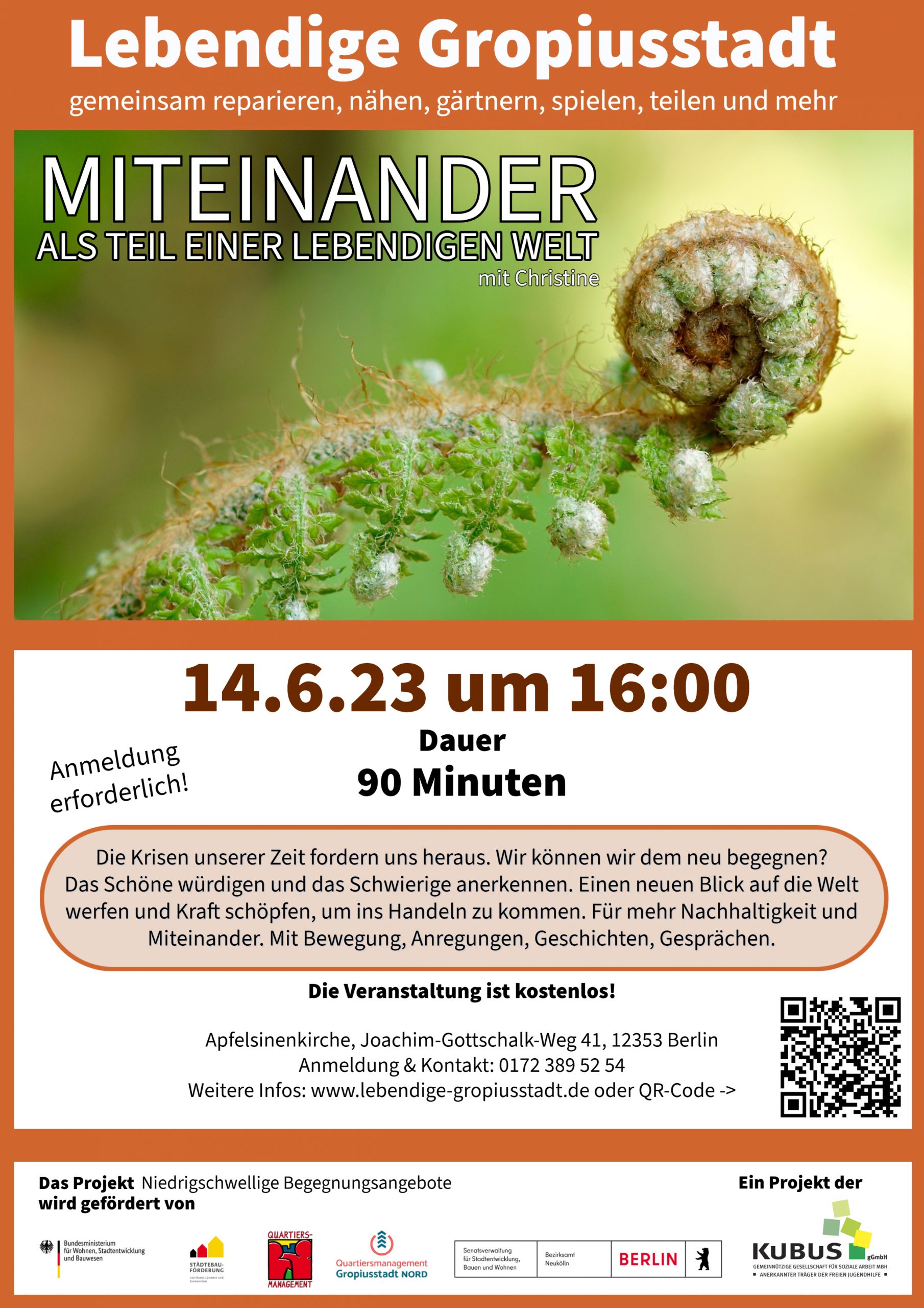 Ganz neu im Programm von „Lebendige Gropiusstadt“ ist das Angebot mit dem schönen Titel „Miteinander – als Teil einer lebendigen Welt“. In […]